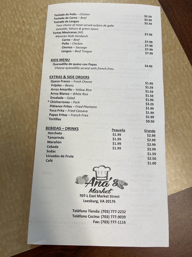 Welcome to Ana's Market & Restaurant, a hidden gem located at 707 E Market St, Leesburg, VA. This vibrant spot blends the charm of a market with a robust restaurant menu that offers an exciting array of authentic Mexican cuisine and delightful subs.